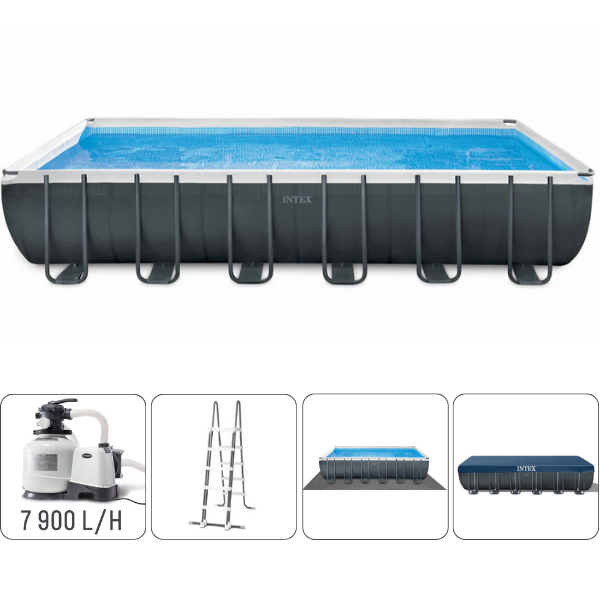 Piscina cu cadru Intex Ultra XTR Premium Rectangular Frame 26364 – din seria de piscine clasa premium, combinand calitatea înaltă și prețul mic, în comparație cu piscinele staționare. O caracteristică distinctivă a acestor piscine este ușurința și simplitatea asamblării, datorită tehnologiei inovatoare a cadrului.