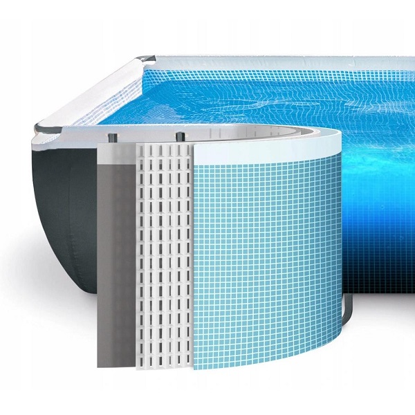 — Pereții piscinelor sunt creați folosind tehnologia SUPER-TOUGH și au trei straturi durabile de material de înaltă calitate. Cele două straturi exterioare sunt realizate din PVC dens de înaltă calitate.